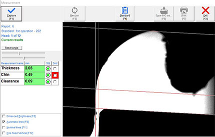 The Semi-Automatic Combination Seam Gauge provides automated seam thickness and countersink depth measurements, including the option of a 360° scan of seam thickness.